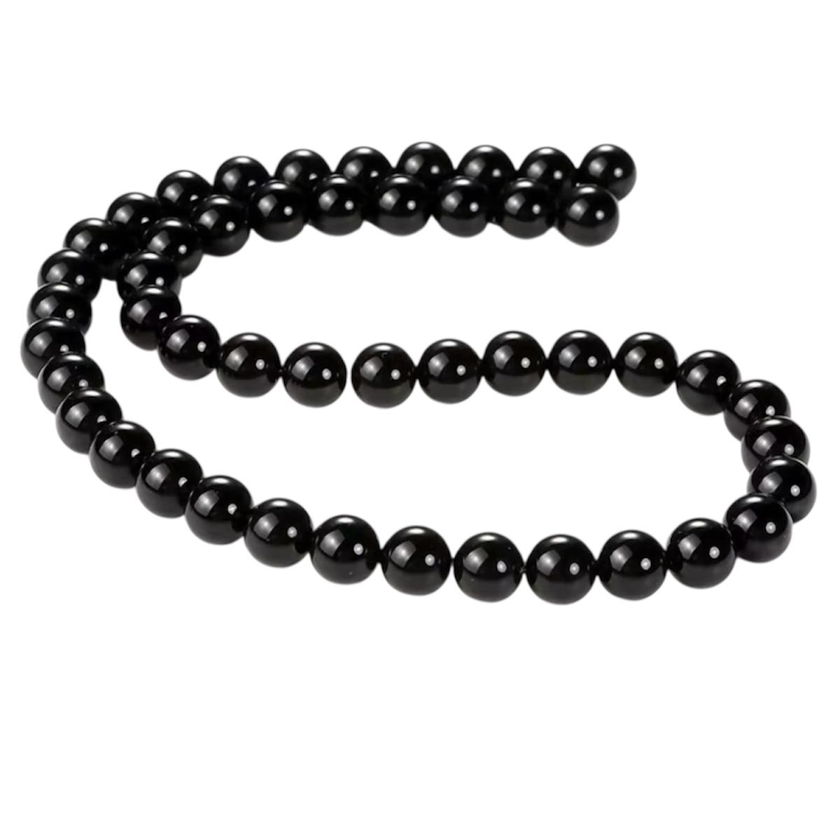 Esse fio lindo é feito com contas naturais de ônix preta, com cerca de 8mm de diâmetro e aproximadamente 48 contas por fio. A ônix é conhecida como uma poderosa pedra de proteção energética, ajudando a bloquear vibrações negativas, fortalecer a autoconfiança e trazer estabilidade emocional. Seu visual preto profundo combina com qualquer criação, trazendo elegância e força para peças artesanais.