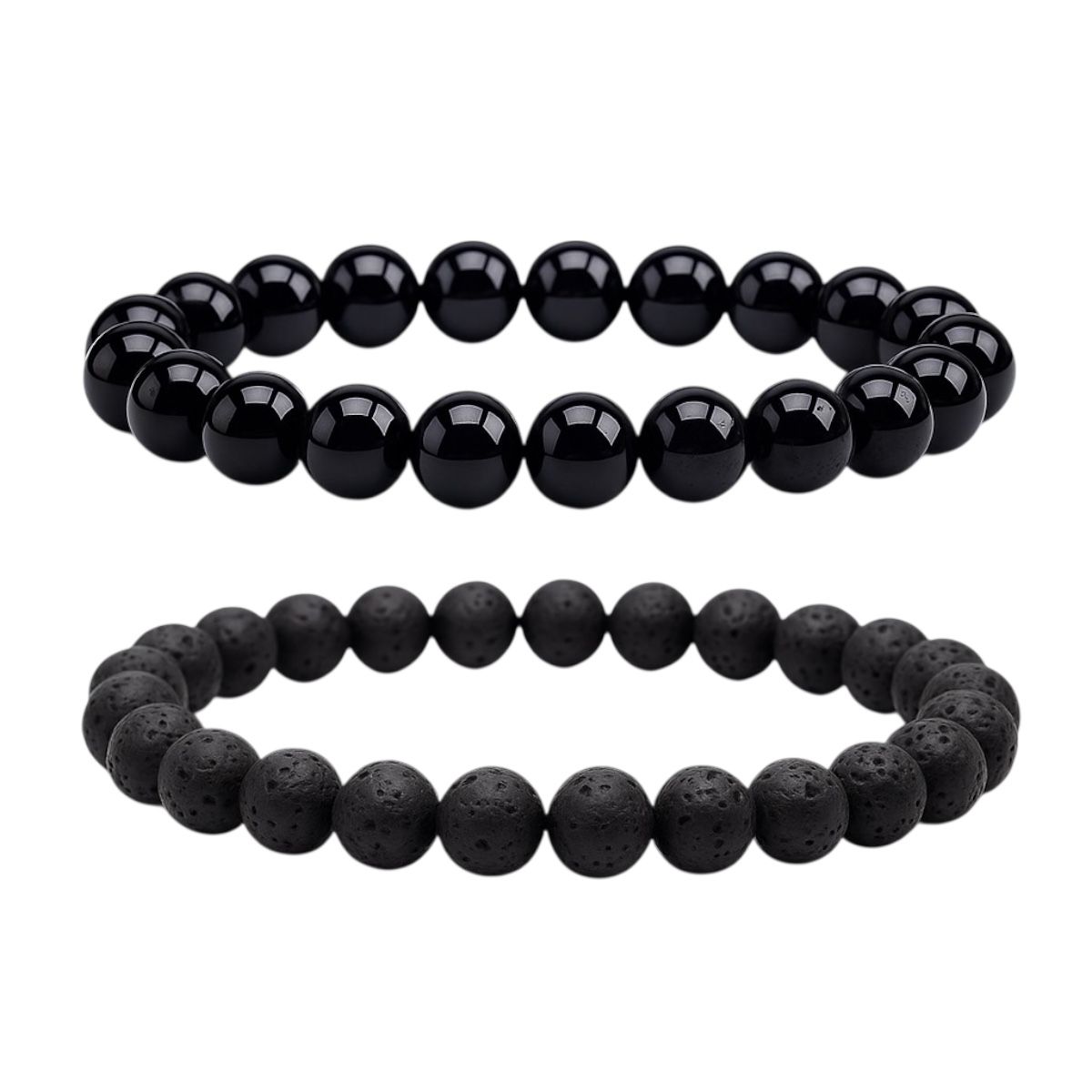 Kit com 2 pulseiras de 8mm (Ônix Preto e Pedra Vulcânica)