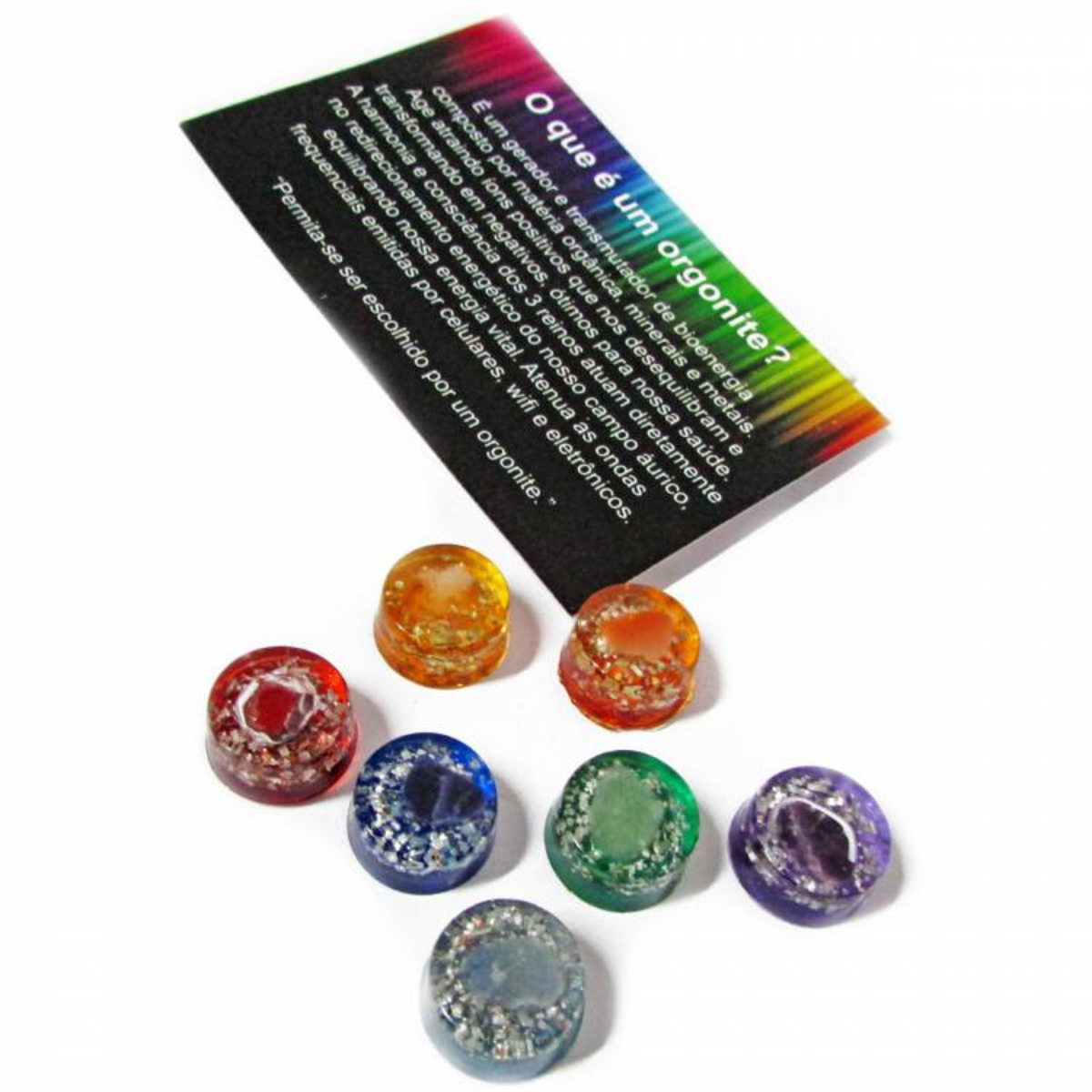 Conjunto com 7 orgonites, cada uma relacionada a um chakra