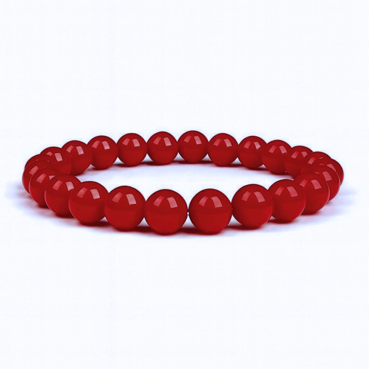 Essa pulseira linda é feita com pedras naturais de jade vermelha, bolinhas de 8mm, perfeita para pulsos de 16 a 17cm. Montamos cada peça com muito carinho, usando fio de silicone bem resistente, que se ajusta confortavelmente ao pulso.